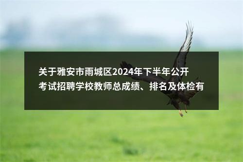 原标题:关于雅安市雨城区2024年下半年公开考试招聘学校教师总成绩、排名及体检有关事宜的公告