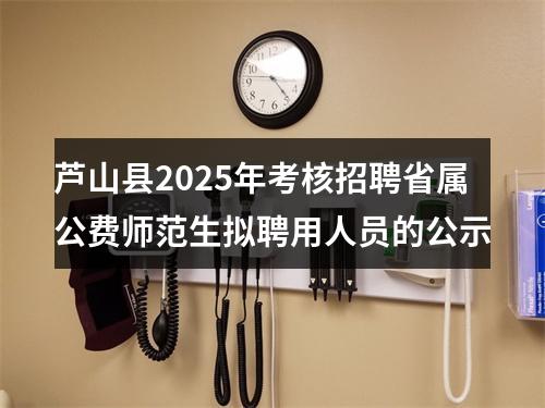 按照四川省教育厅关于公费师范毕业生就业管理工作的相关规定和“公开、平等、竞争、择优”的原则,经面试、体检、考察等程序,现将芦山县2025年考核招聘省属公费师范生拟聘用人员名单予以公示。
