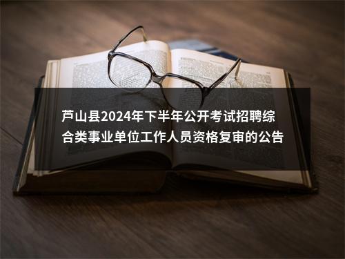 按照雅安市人力资源和社会保障局《关于雅安市2024年下半年公开考试招聘综合类事业单位工作人员的公告》规定,现将芦山县2024年下半年公开考试招聘综合类事业单位工作人员资格复审有关事项公告如下:
