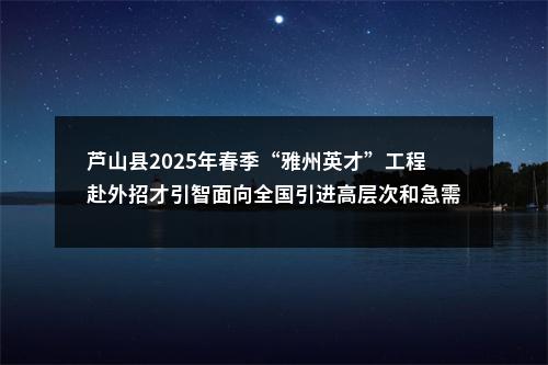 原标题:芦山县2025年春季“雅州英才”工程赴外招才引智面向全国引进高层次和急需紧缺人才拟聘用人员的公示