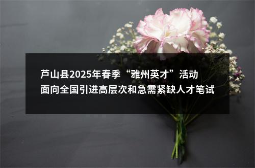 根据《雅安市2025年春季“雅州英才”工程赴外招才引智活动面向全国引进高层次和急需紧缺人才公告》及《芦山县2025年春季“雅州英才”活动面向全国引进高层次和急需紧缺人才公告》有关规定,芦山县2025年春季“雅州英才”工程赴外招才引智活动中单个岗位报名人数比例达到10:1及以上的岗位,即“25047003”岗位需要进行笔试。进入笔试人员名单详见附件《芦山县2025年春季“雅州英才”活动面向全国引进高层次和急需紧缺人才笔试人员名单》。