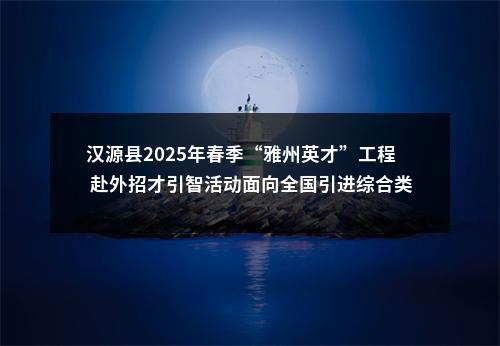为加强我县人才队伍建设,优化人才队伍结构,助力汉源经济社会高质量发展,经研究,拟开展我县2025年春季“雅州英才”工程赴外招才引智活动,引进一批综合类、教育类高层次和急需紧缺人才到汉工作。现将有关事项公告如下:
