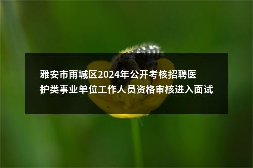 按照雅安市雨城区人力资源和社会保障局《关于雅安市雨城区2024年公开考核招聘医护类事业单位工作人员的公告》规定,经报名、资格审查程序,现将雅安市雨城区2024年公开考核招聘医护类事业单位工作人员资格审核进入面试人员相关事宜公告如下。