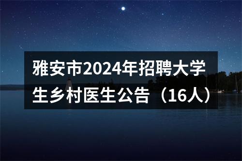 本次共招聘16人,具体招聘单位、岗位及名额详见《雅安市2024年大学生乡村医生计划招聘岗位一览表》(附件1)。