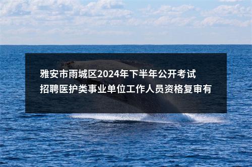 按照雅安市人力资源和社会保障局《关于雅安市2024年下半年公开考试招聘医护类事业单位工作人员的公告》规定,经网上报名、资格初审、笔试程序,现将雅安市雨城区2024年下半年公开考试招聘医护类事业单位工作人员资格复审有关事宜公告如下: