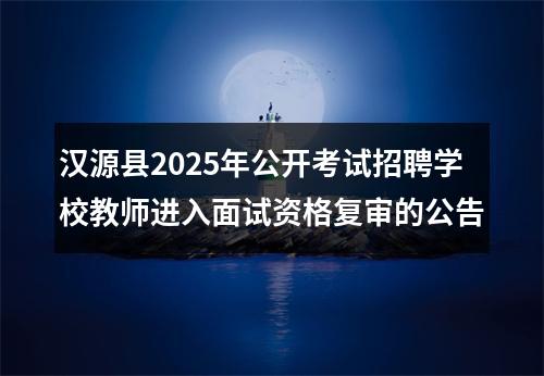 在线咨询 根据雅安市人力资源和社会保障局《关于雅安市2025年公开考试招聘学校教师的公告》规定,现将汉源县2025年公开考试招聘学校教师资格复审有关事项公告如下: