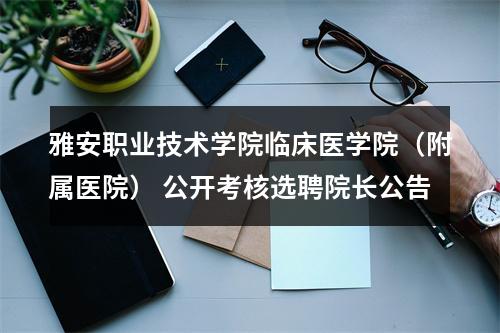 在线咨询 为进一步深化医疗卫生事业单位干部制度改革,因工作实际和发展需要,雅安职业技术学院临床医学院(附属医院)拟面向全市范围公开考核选聘院长1名,有关考核选聘事宜公告如下: